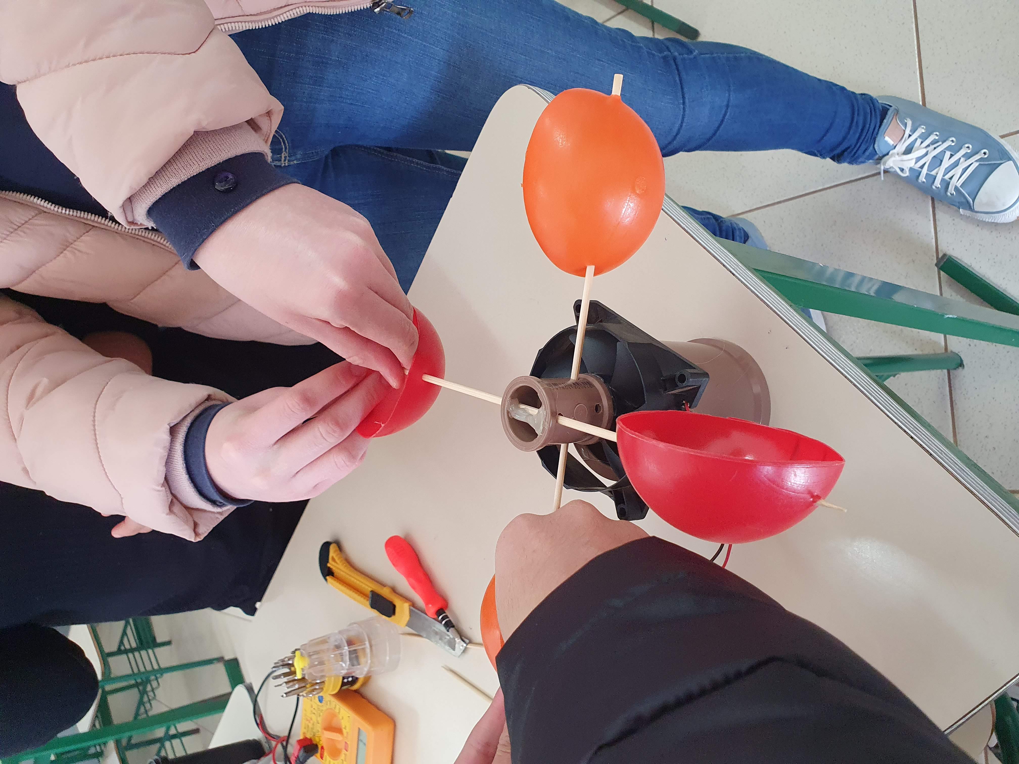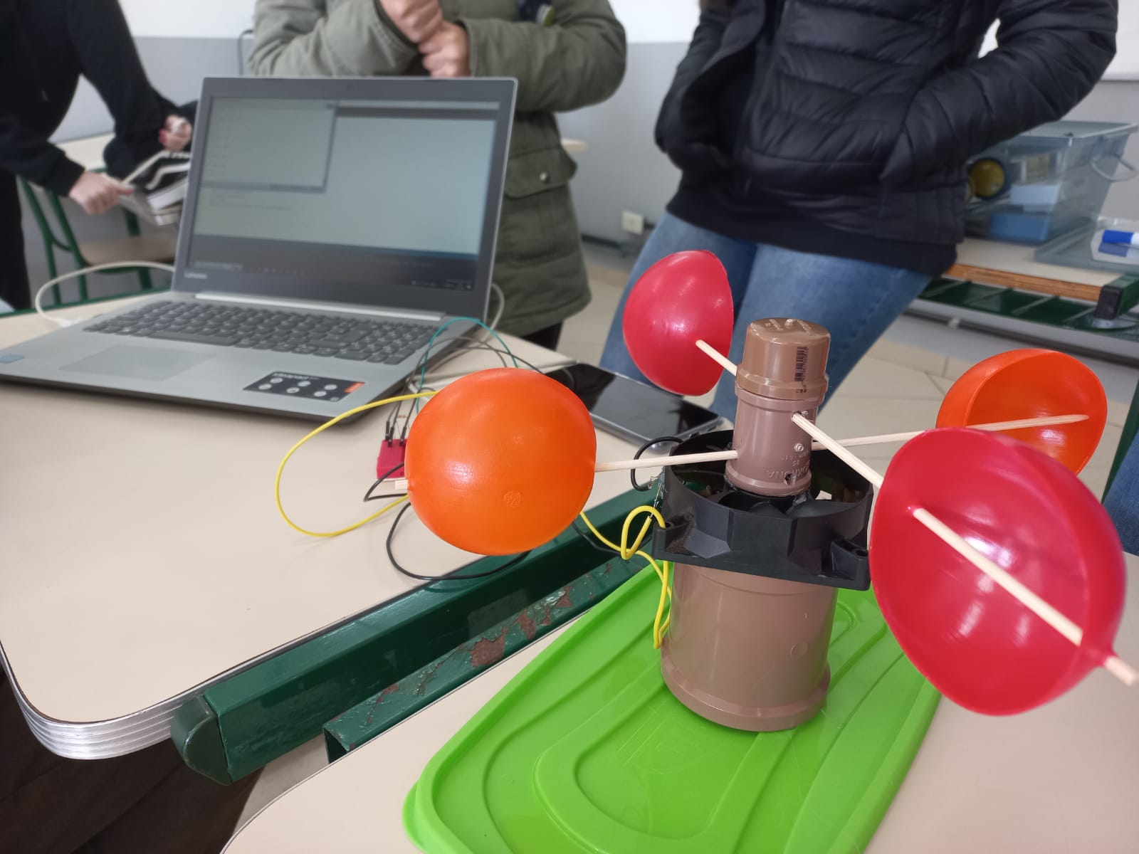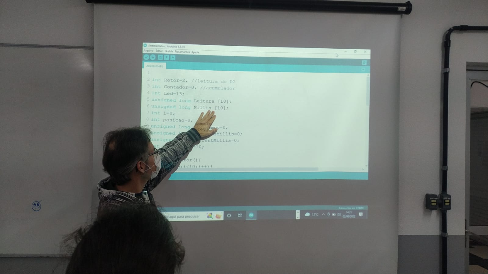 Nesse dia foi dado continuidade à montagem do código: foi preciso descobrir uma forma de calcular a velocidade do vento através da plataforma arduíno. Para isso, foi usado como base quanto tempo leva para o protótipo dar um determinado número de voltas ao redor do próprio eixo.