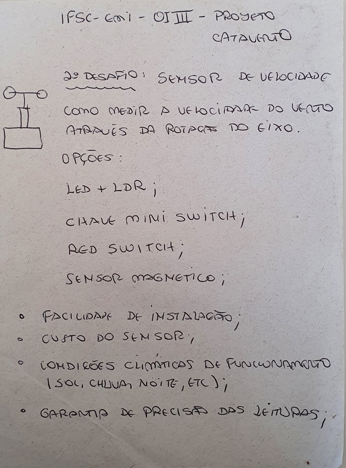 Nesse dia foi iniciada a montagem do código e foram feitos os cálculos para encontrar uma fórmula para medir a velocidade do vento através da rotação do eixo do protótipo.